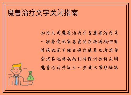 魔兽治疗文字关闭指南